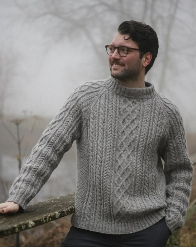 The sleeves are worked in the round with double pointed needles/short circular needle, bottom up. The body and sleeves are placed on the same circular needle and the yoke worked, decreasing to raglan at the same time. Stiches are cast off for the neck mid-front and the piece continued back and forth. The neck is worked to finish.