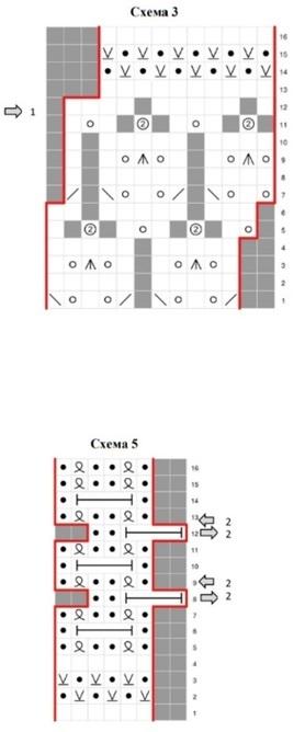 e) ПМНР, ( 2 вм. лиц. влево, 1 лиц., 2 вм. лиц. вправо, 2 вм. лиц. влево, 1 лиц, 2 лиц. из 3 петель способом 1, 1 лиц., 2 вм. лиц. вправо, 2 вм. лиц. влево, 1 лиц., 2 вм. лиц. вправо) 5 раз;