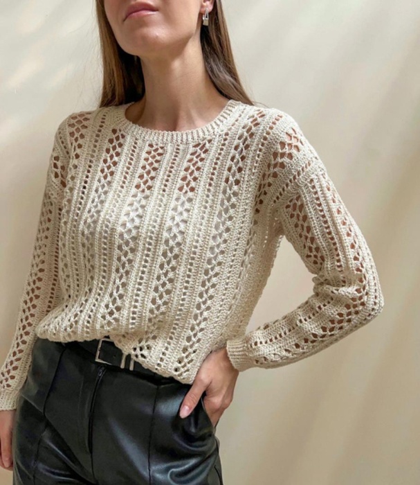 Джемпер и топ связаны в поперечной технике в одну нить по Схеме узора 1.