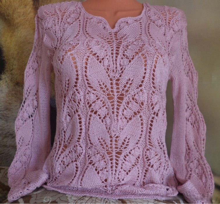 Расчёт вязания дан при плотности образца, связанного узором "ландыши" мохеровой пряжей: