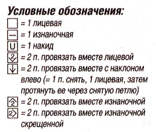 Плотность вязания: узор 2 — 17 п. х 25 р. = 10 х 10 см; узор 3 — 17 п. х 27 р. = 10 x 10 см.