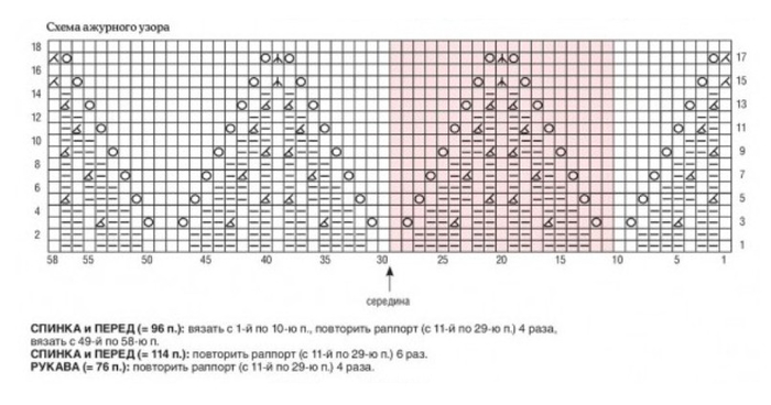 Через 46 (47:48:49:50) см от начального ряда закрыть для горловины средние 12 (12:12:14:14) п. и обе стороны закончить раздельно.