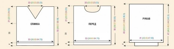 | Обхват груди | Ширина переда и спинки изделия | Длина изделия | Длина рукава по внутреннему шву | |
