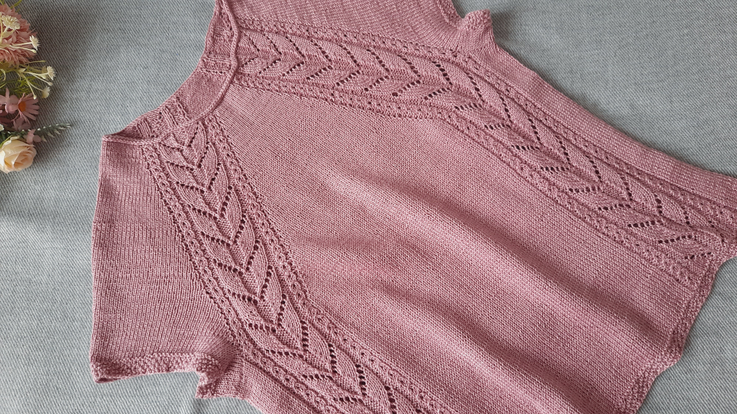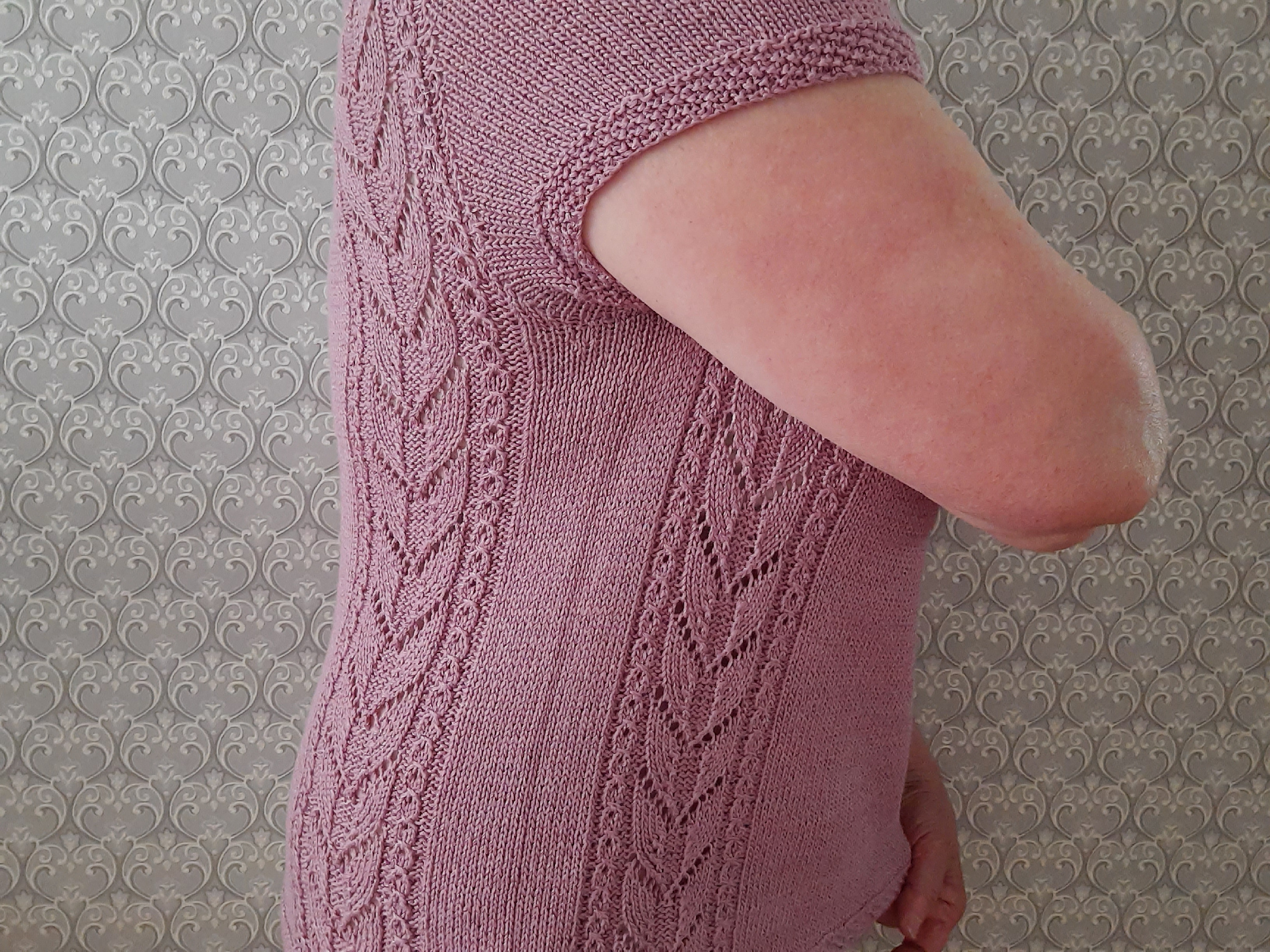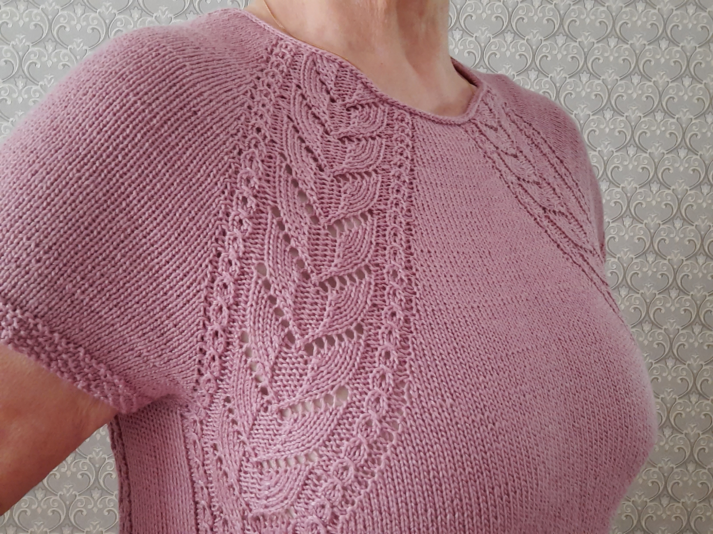 Рукава короткие всего 4 см. провязала так же узором рис или путанкой.