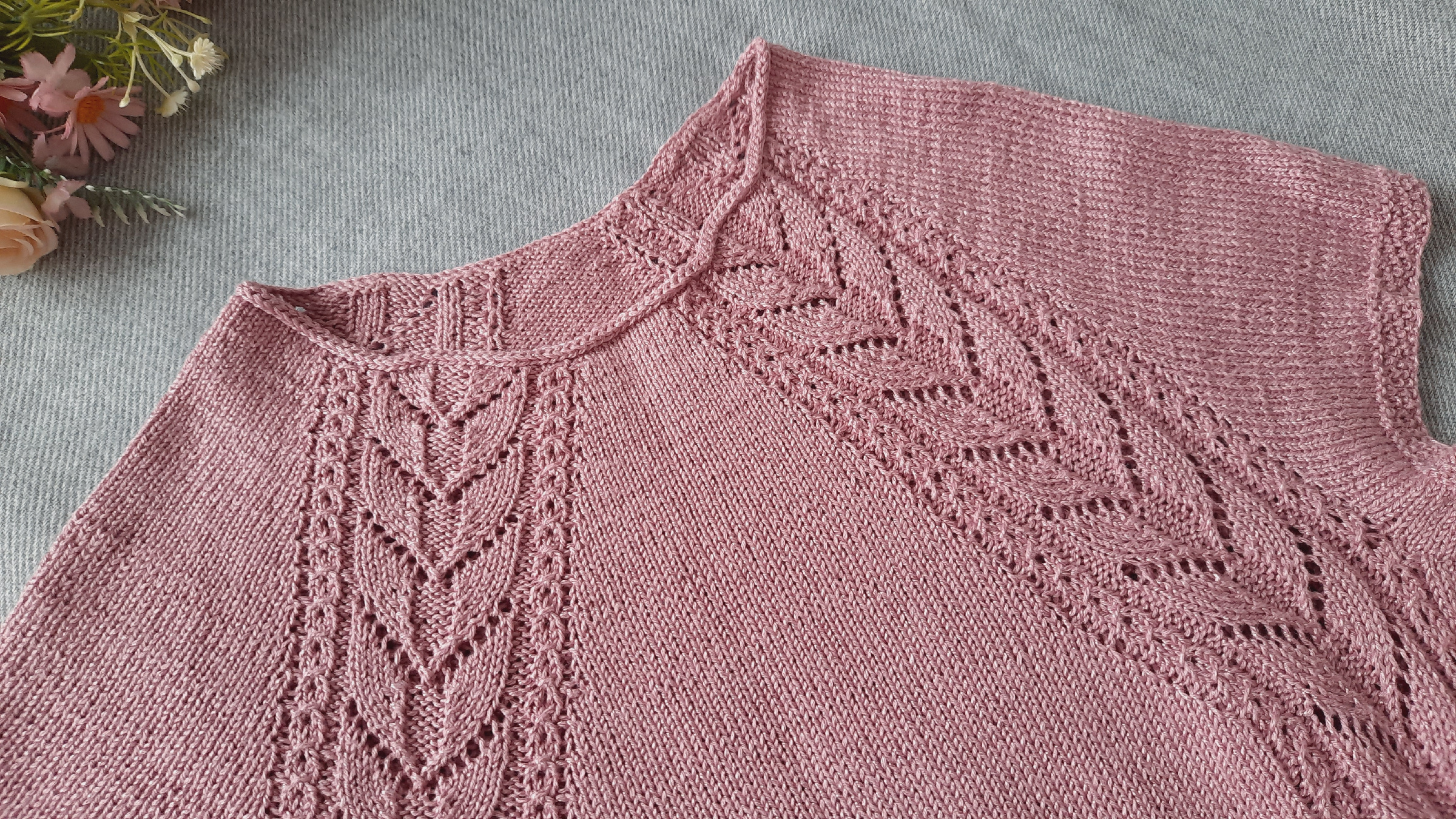 Подняла петли ростка и прибавила петли подреза у меня получилось по бокам 20 петель между узорами.