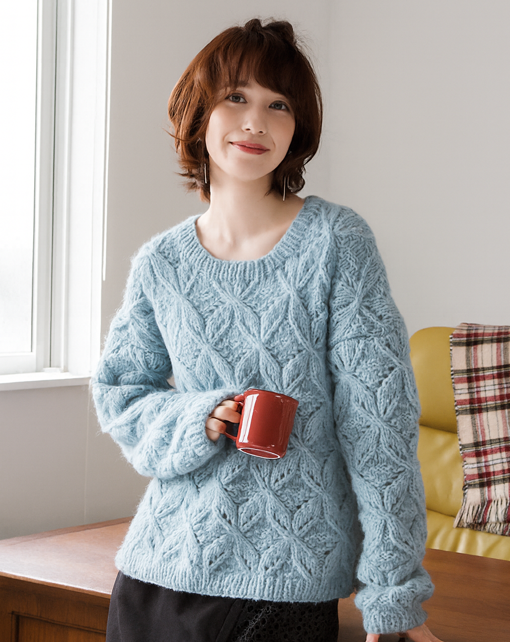 Или вы можете выполнить этот пуловер в летнем варианте из пряжи Knitting Cotton от Daruma (50г/100м)