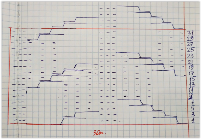 Составляем инструкцию по вязанию изделия: подробный по-петельный расчет и распределение узоров на нужный размер.