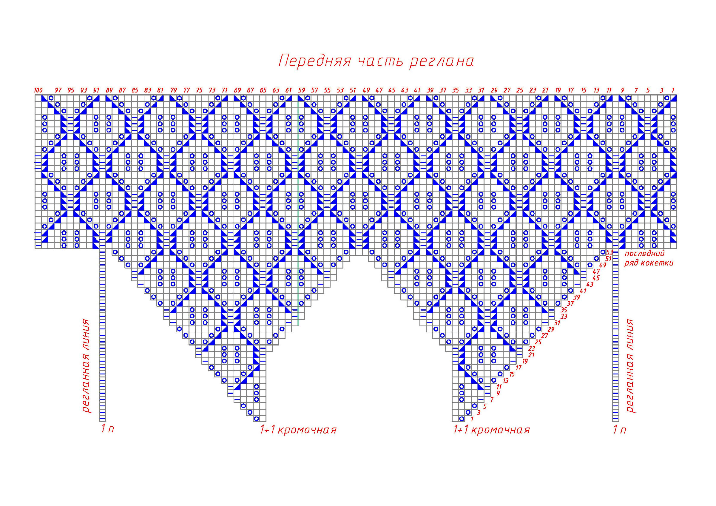 Далее вязать по схеме реглана. Все изнаночные ряды по рисунку.