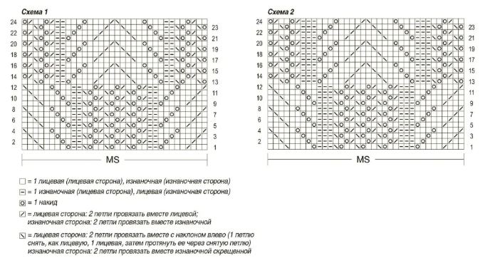 лицевая сторона: 2 петли провязать вместе с наклоном влево ( 1 петлю снять как лицевую, 1 лицевая, затем проянуть ее через снятую петлю)