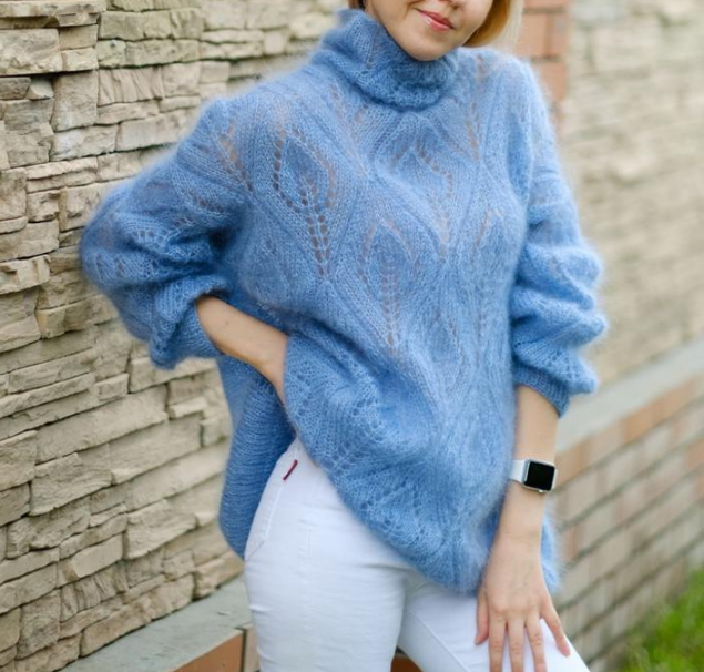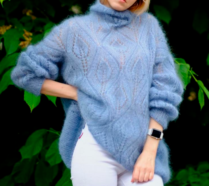 Расход: 8 мотков мохера и 2 мотка люрекса.