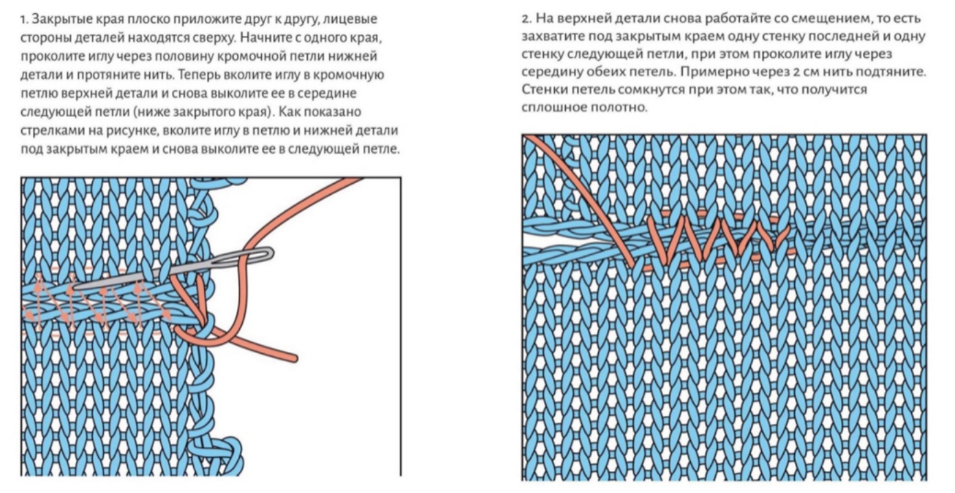 Теперь вколите иглу в кромочную петлю верхней детали и снова выколите ее в середине следующей петли (ниже закрытого края).