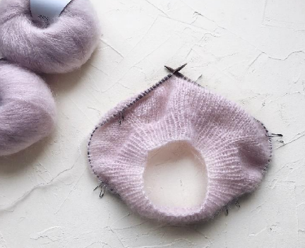 Необходимо отметить маркером начало вязания (в области подреза), разделив