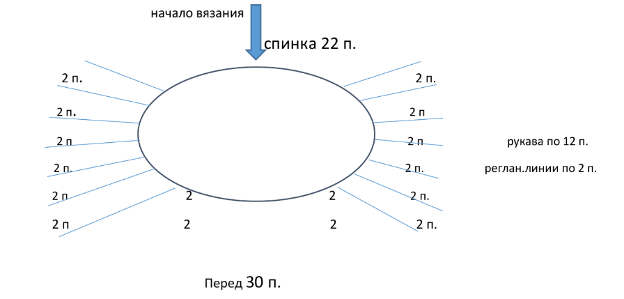 и петли передней части изделия, в т.ч и петли следующей регланной линии.