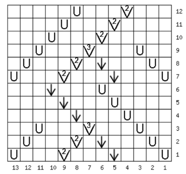 Раппорт узора – 13 петель в ширину, 12 рядов в высоту.