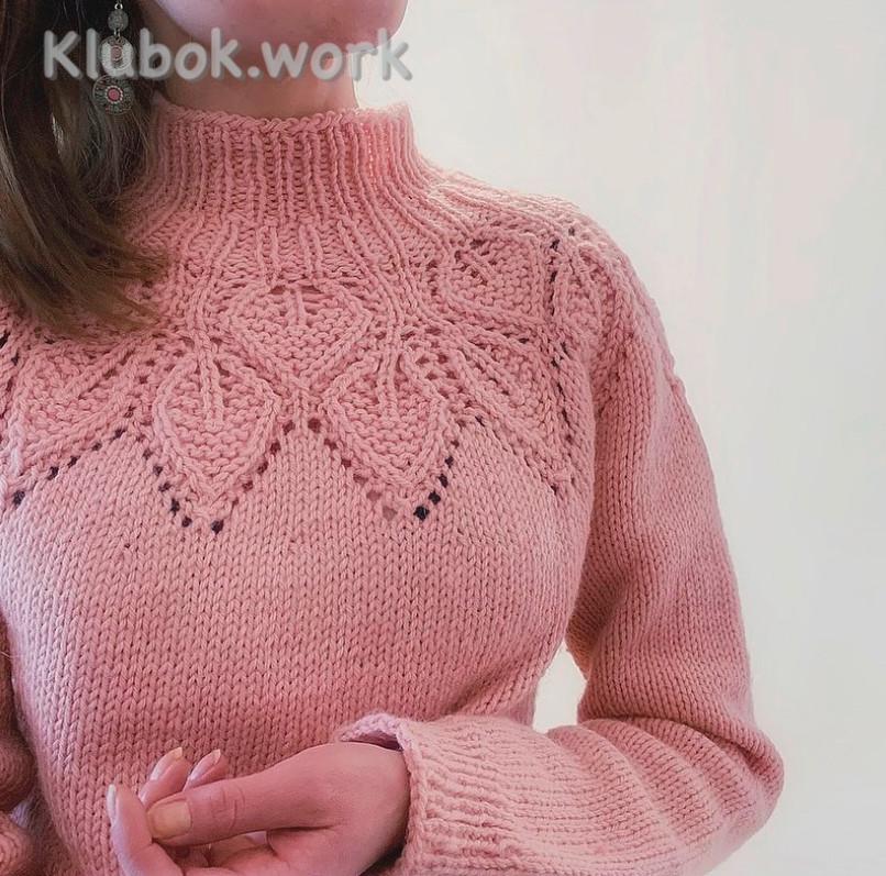 Свитер спицами с круглой кокеткой