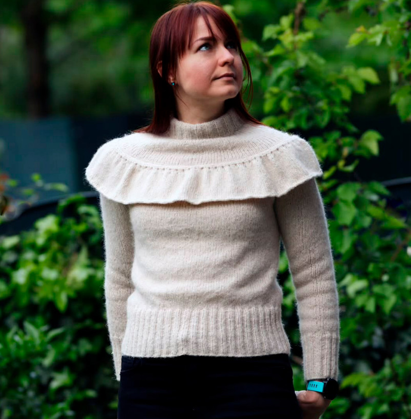 Кофточка с воланом спицами