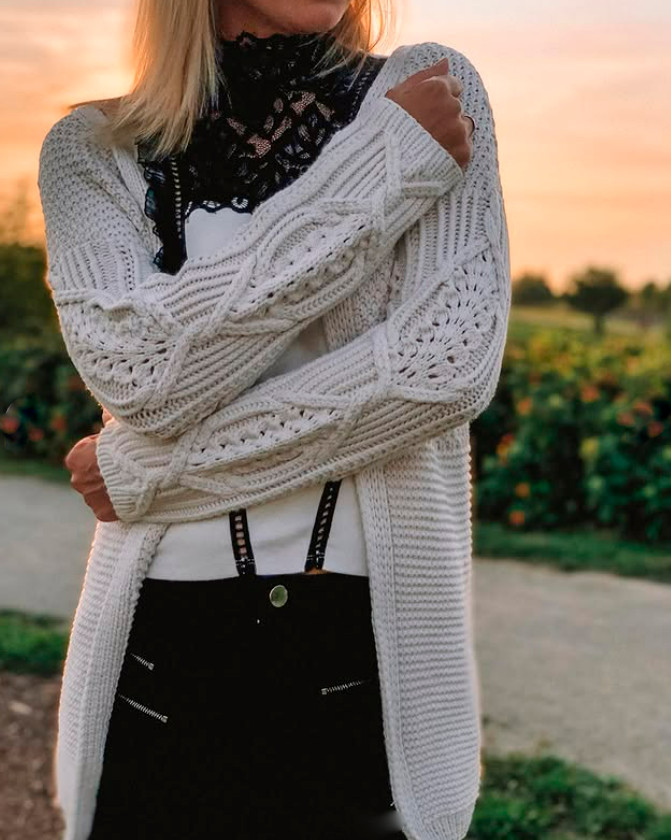Длину кардигана можно варьировать; от этого зависит расположение пуговиц.