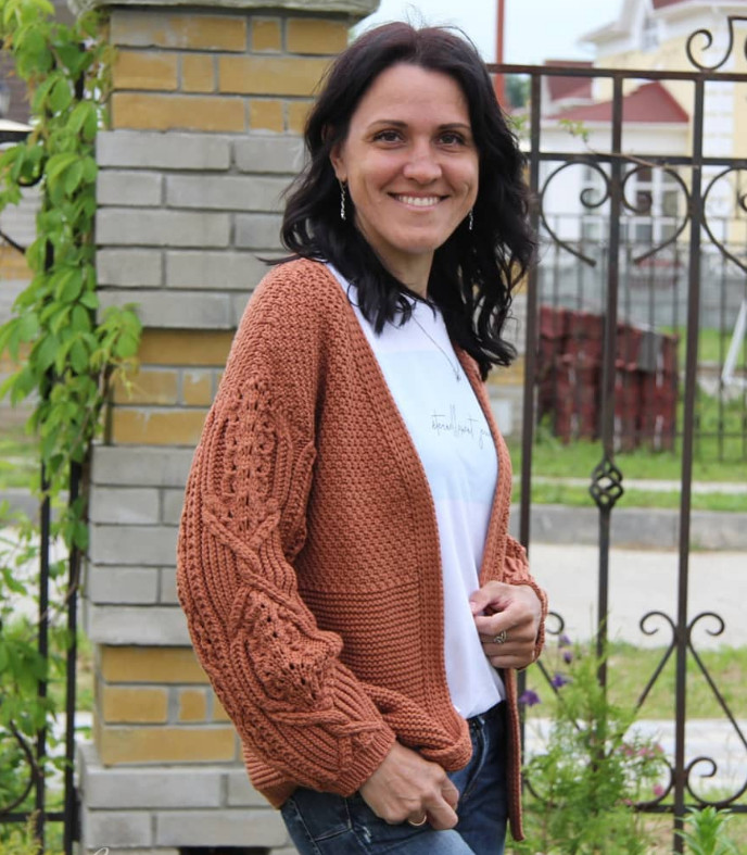 Не поднимайте и не примеряйте кардиган, пока он полностью не высохнет.