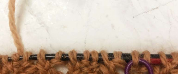 Накинуть нить на следующую изнаночную петлю и развернуть работу на изнаночную сторону.