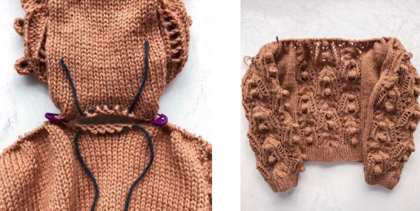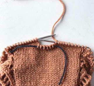 Отложенные на петледержатель открытые 6 (6, 8) петель от рукава и 6 (6, 8) петель от переда и спинки под каждым рукавом, так называемые подрезы, соединить трикотажной иглой кеттельным швом.
