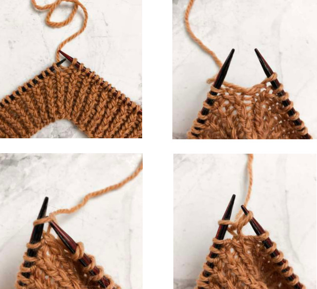 Далее снять петлю с левой спицы и провязать ещё 4 ряда поворотными рядами, а именно: