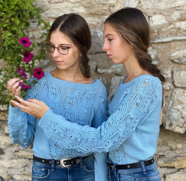 Рукав: 2 лиц.п., 2 изн.п., 2 вместе лиц.п. с наклоном влево, 1 накид, 1 лиц. скрещенная п., 2 изн.п., 2 вместе лиц.п. с наклоном влево, 1 накид, 1 изн.п., 1 накид, 2 вместе лиц.п. с наклоном вправо, 2 изн.п., 1 лиц. скрещенная п., 1 накид, 2 вместе лиц.п. с наклоном вправо, 2 изн.п., 1 накид, 3 лиц.п., 2 вместе лиц.п. с наклоном влево, 1 лиц.п., 2 вместе лиц.п. с наклоном влево,