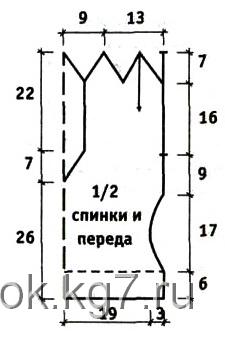 Спинка: вяжется сверху вниз. Набрать 105