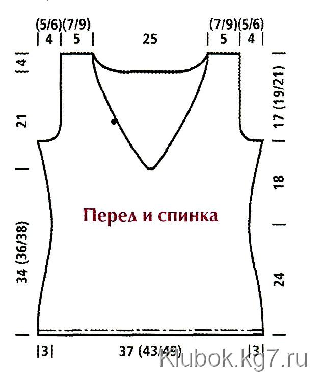 высохнуть. Выполнить плечевые швы. По краю пройм поднять и провязать лиц. 88
