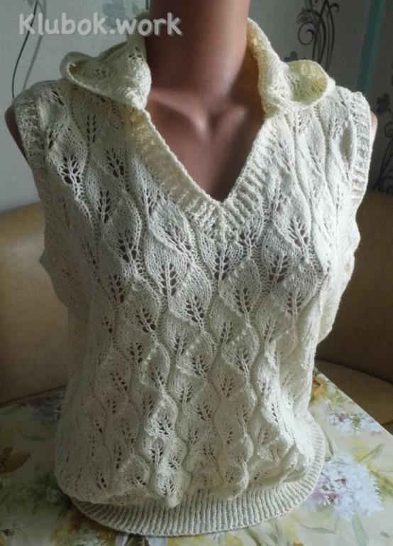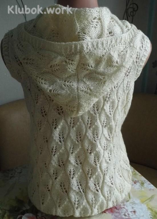 Жилет с капюшоном. Узор Листики Автор работы Татьяна КузнецоваKlubokhttp://klubok.work/1/34/5769/Klubokhttps://klubok.work/css/image/top-logo-en.png