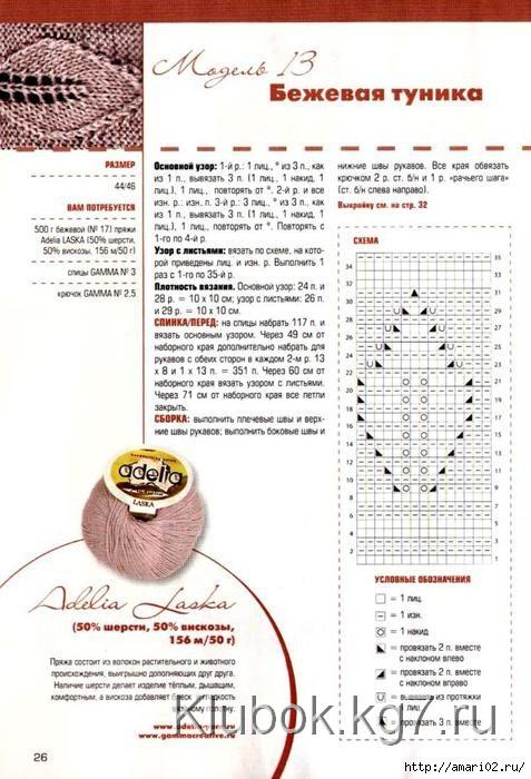 и справа от центральной петли),изнаночные ряды – по рисунку.