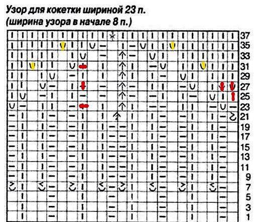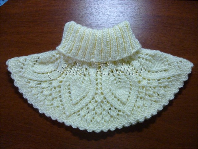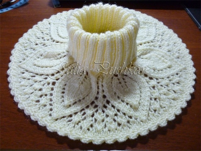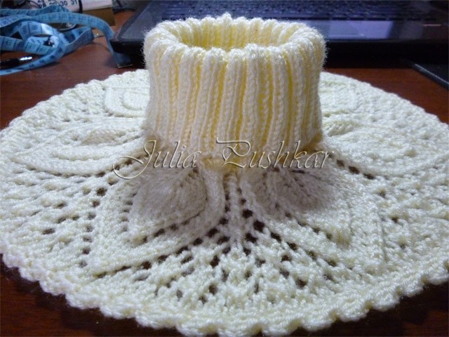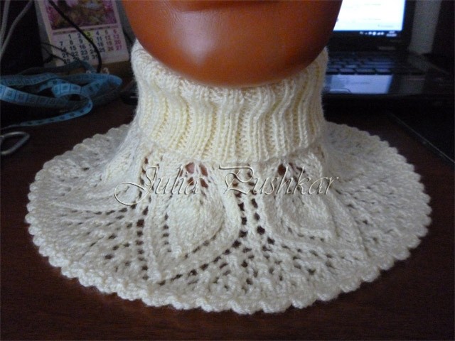 На спицах 105 петель (7 раппортов узора) . Удобнее перейти накруговые спицы.