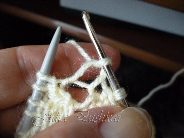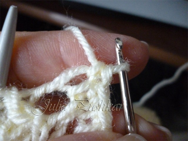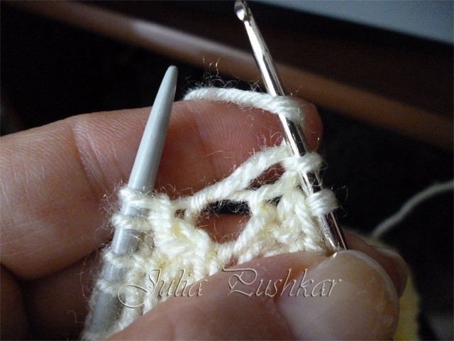 На спице 1 петля. Провязываем вторую и далее две вместе. Так до конца ряда.