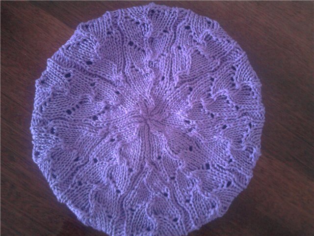 БЕРЕТ И ГОРЖЕТКА СВЯЗАННЫЕ ПО МОТИВУ УЗОРА ВЕТКА И ЛИСТЬЯ