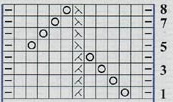 M1L: добавить петлю из протяжки предыдущего ряда, провязывая лицевую за заднюю половинку петли