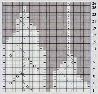 Продолжить вязание по схеме 1, повторяя по кругу раппорт из 13 петель 18 раз.