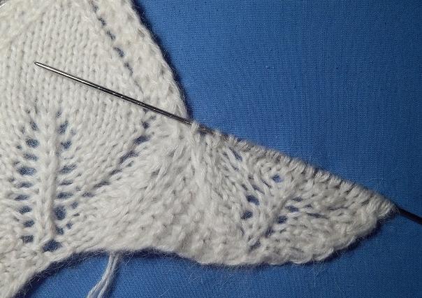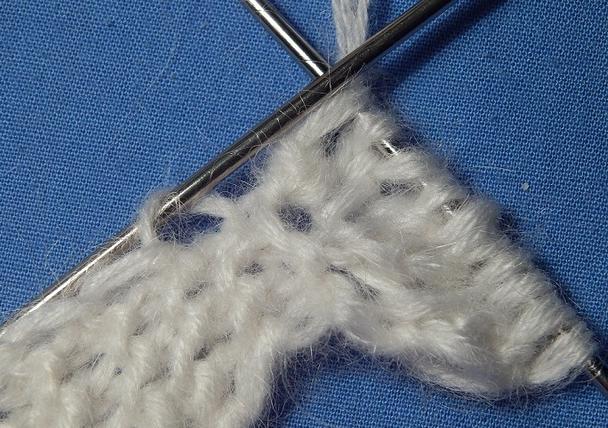 to the right without knitting. With the left needle, pick up the second stitch (skip the first) on the triangle, transfer the slipped stitch from the right needle to the left
