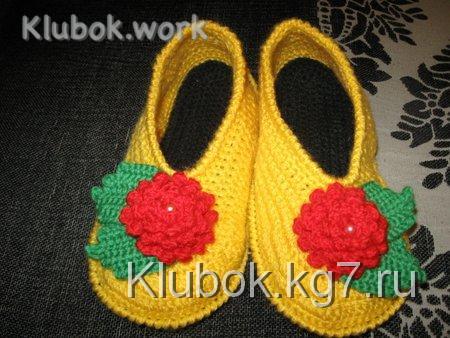 подошвы и последний ряд обвязываю рачьим шагом, бантики-листики-цветочки можно