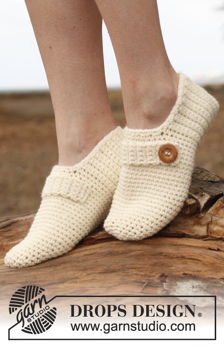 Связать 6 возд. п. Связать 1 ст. б/н во вторую возд. п. от крючка, далее по 1 ст. б/н в следующие 4 возд. п. = 5 ст. б/н в ряду. Далее вязать ст. б/н, чередуя ЛС. и ИС. Связать лямку длиной 15-16-17 см. Закрепить лямку на тапочке, пришить пуговицу.