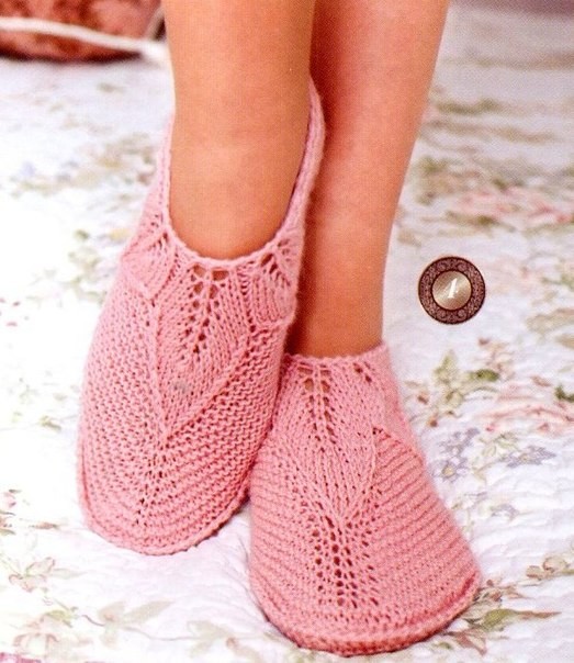 Тапочки: вязать прямыми и обратными рядами от носка к пятке.
