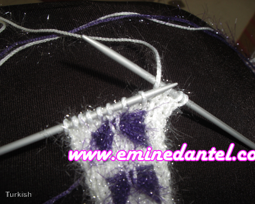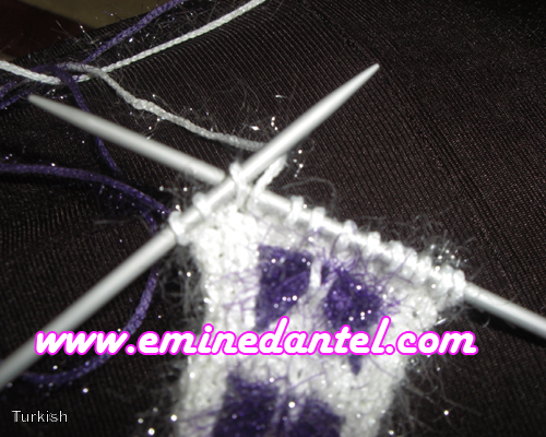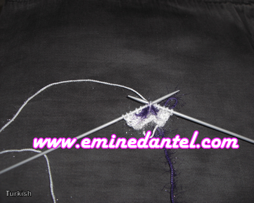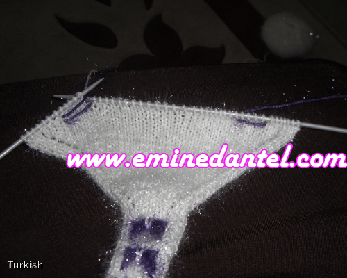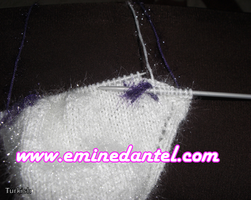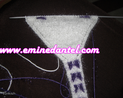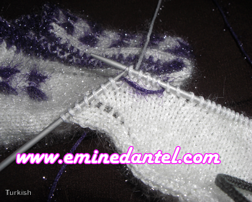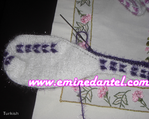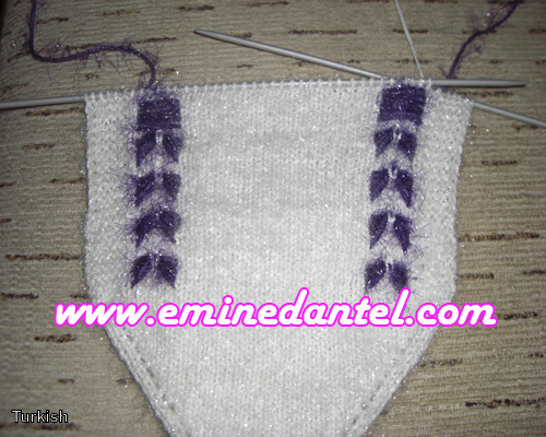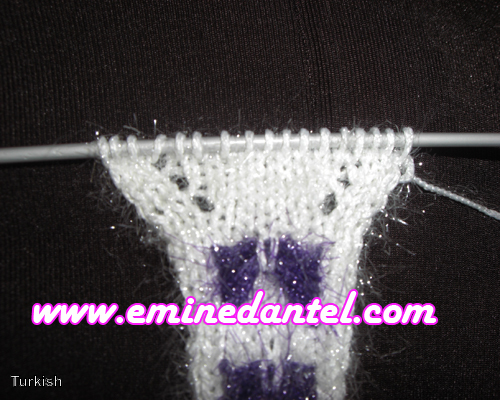 Набрать 11 петель и вязать участок высотой мыска ноги используя узор "бабочки".