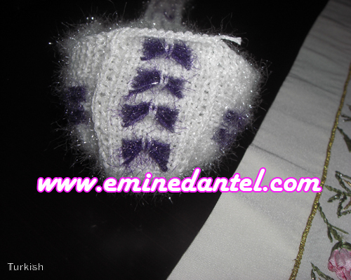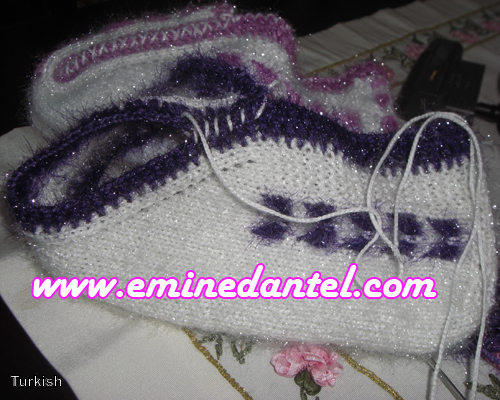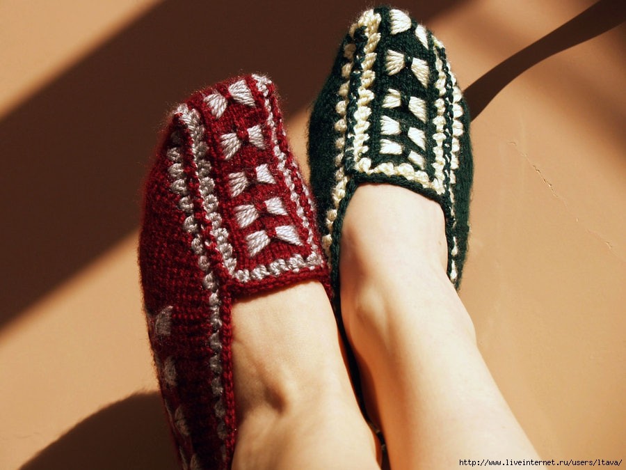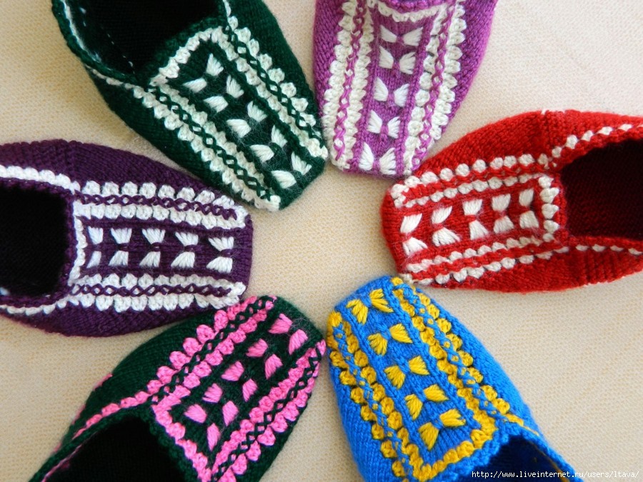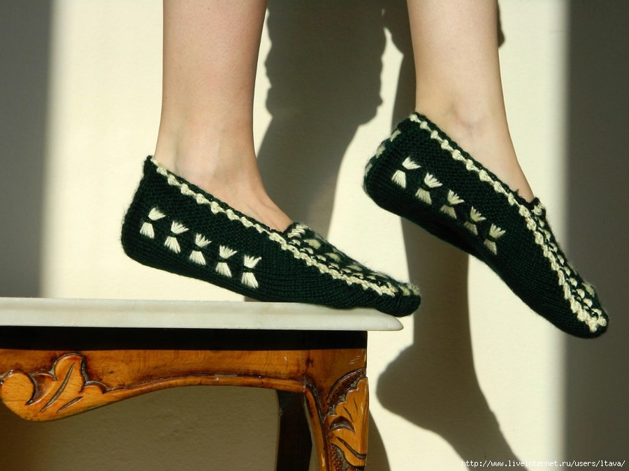 Обвязываем верх следочка и язычок крючком, столбиком с накидом(в одну петлю два столбика),пришиваем язычок швом крестик.