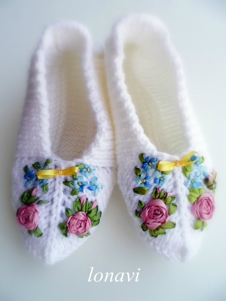 От автора:"Тапочки, связанные моей мамочкой. Мама вязала,а я оформляла."