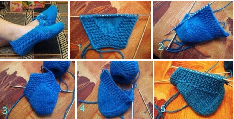 Вывязываем пятку по принципу мыска ( см.выше). Выделяем средние 9 петель. Последние 8 рядов вяжем платочной вязкой. Петли закрыть. Украсить тапочку можно помпоном, бантом, цветком.