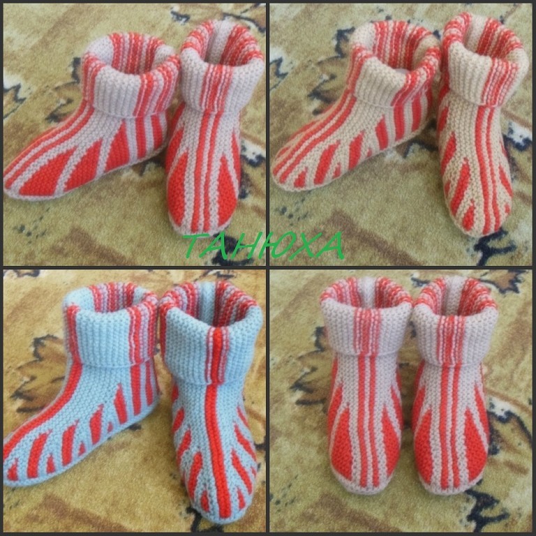 В?ЫСОТА САПОЖКА МОЖЕТ БЫТЬ РАЗНАЯ, МОЖНО НАБИРАТЬ ЛЮБОЕ К-ВО , НА СЛЕДУЮЩИХ БОТИНОЧКАХ Я НАБРАЛА 30 ПЕТЕЛЬ В ВЫСОТУ. ДЛИНУ ТОЖЕ МОЖНО УВЕЛИЧИТЬ ИЛИ УМЕНЬШИТЬ. ПРОВЯЗАВ СООТВЕТСТВЕННО БОЛЬШЕ ИЛИ МЕНЬШЕ ТРЕУГОЛЬНИЧКОВ.? ЛЕГКИХ ВАМ ПЕТЕЛЕК.?"