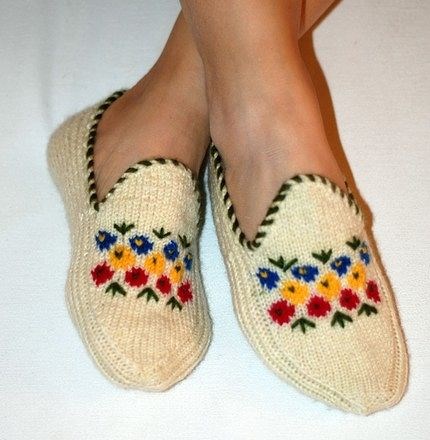 1: набираем к примеру 6 петель и вяжем язык в каждом четном ряду, добавляем по 1 петли по краям, длина язычка зависит от того какими высокими должны быть ваши тапочки. Потом добавляем новый цвет и вяжем новым цветом сам следок, здесь добавляем опять в каждом четном ряду по петельке по краям. Добавление делать до тех пор пока не связали ту длину как и длину язычка. Потом вяжем боковинки и подошву любым рисунком или однотонные, когда связали нужную вам длину, вяжете пяточку и все закрываете. В конце пришиваете язык как на картинке и готово.