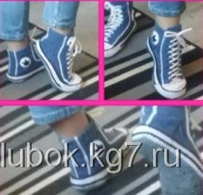 Чтобы закончить, кончик тапочка обвязать вокруг крючком сс, как показано на фото.