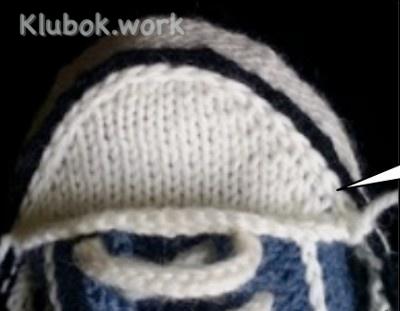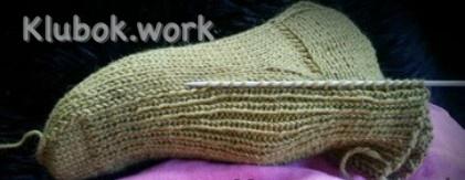 Продолжить вязание лицевой гладью на 1-й и 4-й спицах, и резинкой на 2-й и 3-й спицах, как и раньше (до убавок мыска)
