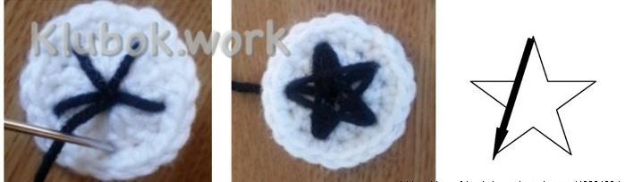 Используя черную нить и иглу, вышейте звезду, как показано на фото.