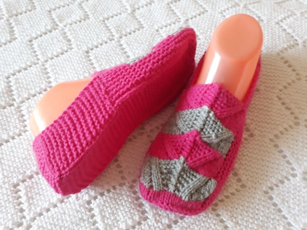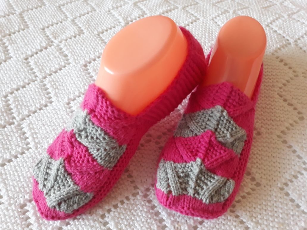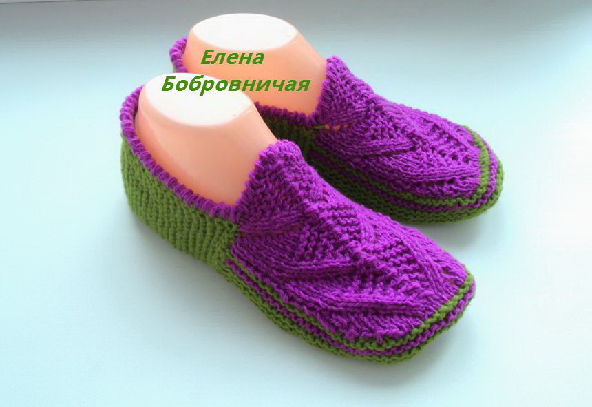 Тапочки-следочки спицами. АВТОР ЕЛЕНА БОБРОВНИЧАЯ