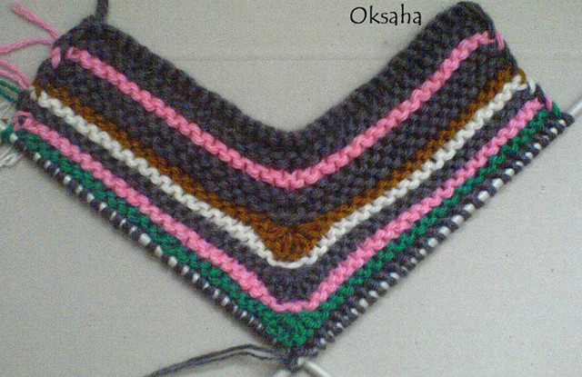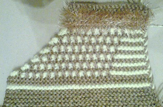 После пятой (шестой) Ракушки вяжем 6 рядов платочной вязкой (лицевые петли). Это для перехода от мыска к подошве (или другими словами толщина стопы). Далее вяжем подошву. Для более прочной можно добавить капроновую нить, для более теплой шерстяную нить. ПОДОШВА- связать 11 (13) рядов платочной вязкой (лицевые петли) Можно делать убавки в середине (3 петли вместе) и по краям (2 петли вместе) для овальной подошвы.